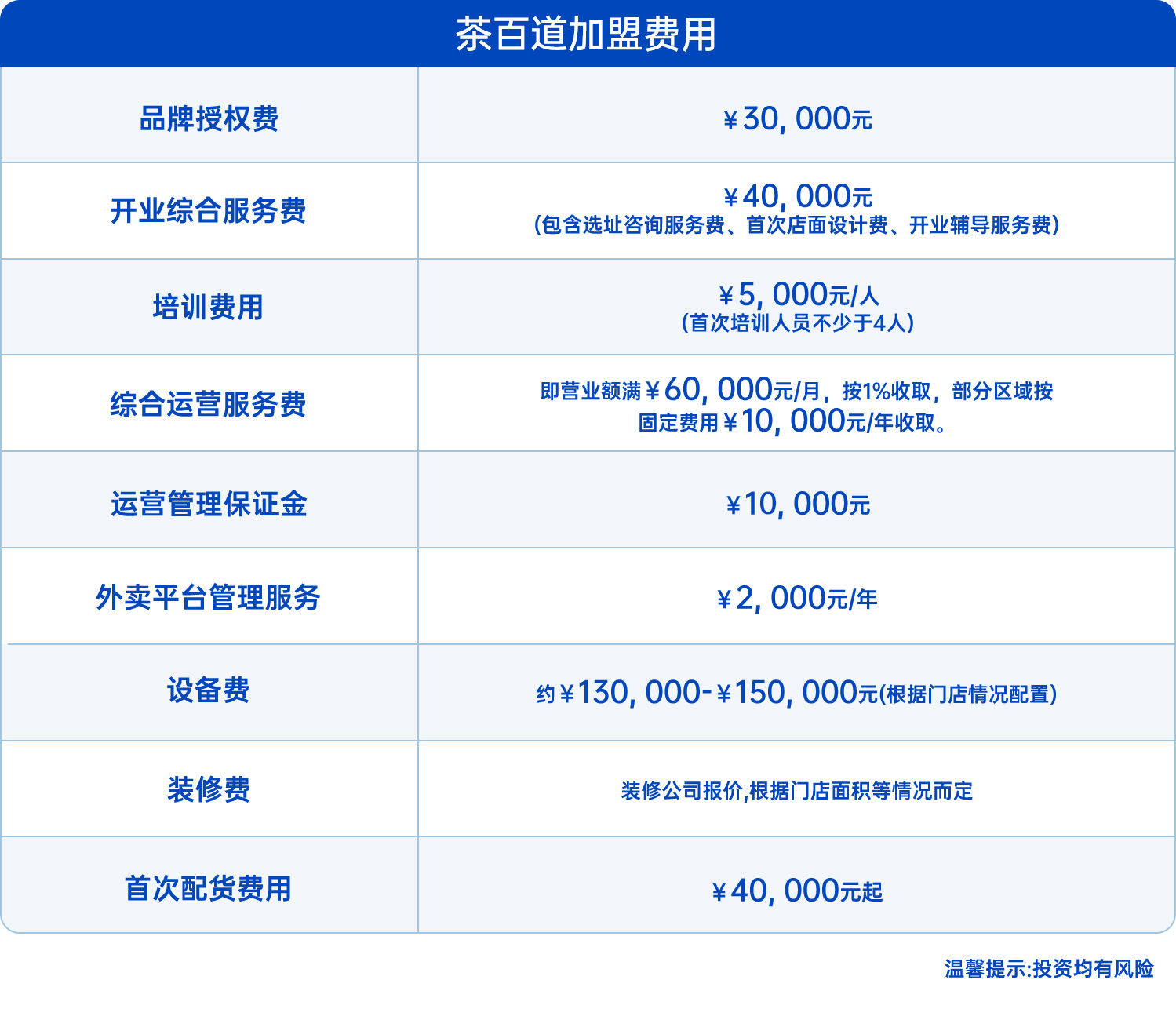 茶百道投资费用